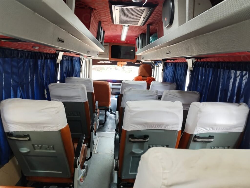 Our 12 Seater Tempo Traveller comes equipped with features that provide comfort and convenience for every passenger:
